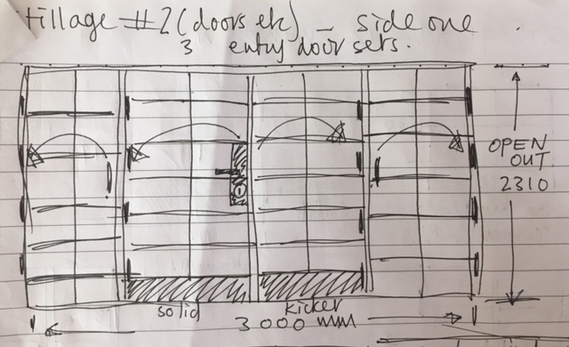 IMAGE 1017 (large 4 french door wall with steel plate kicker, side doors one step shorter than middle doors 3000W x (2160/2500)): $12,500 + GST