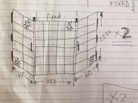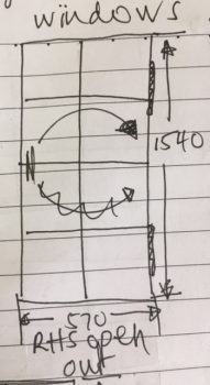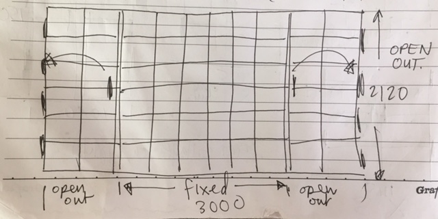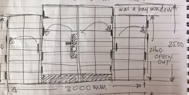 The floor to ceiling window/door sets are a combination of bay and fixed (I have tried to show all combinations in the sketches provided) but as each window is a separate constructed unit the bays can also become flat wall fitted windows.