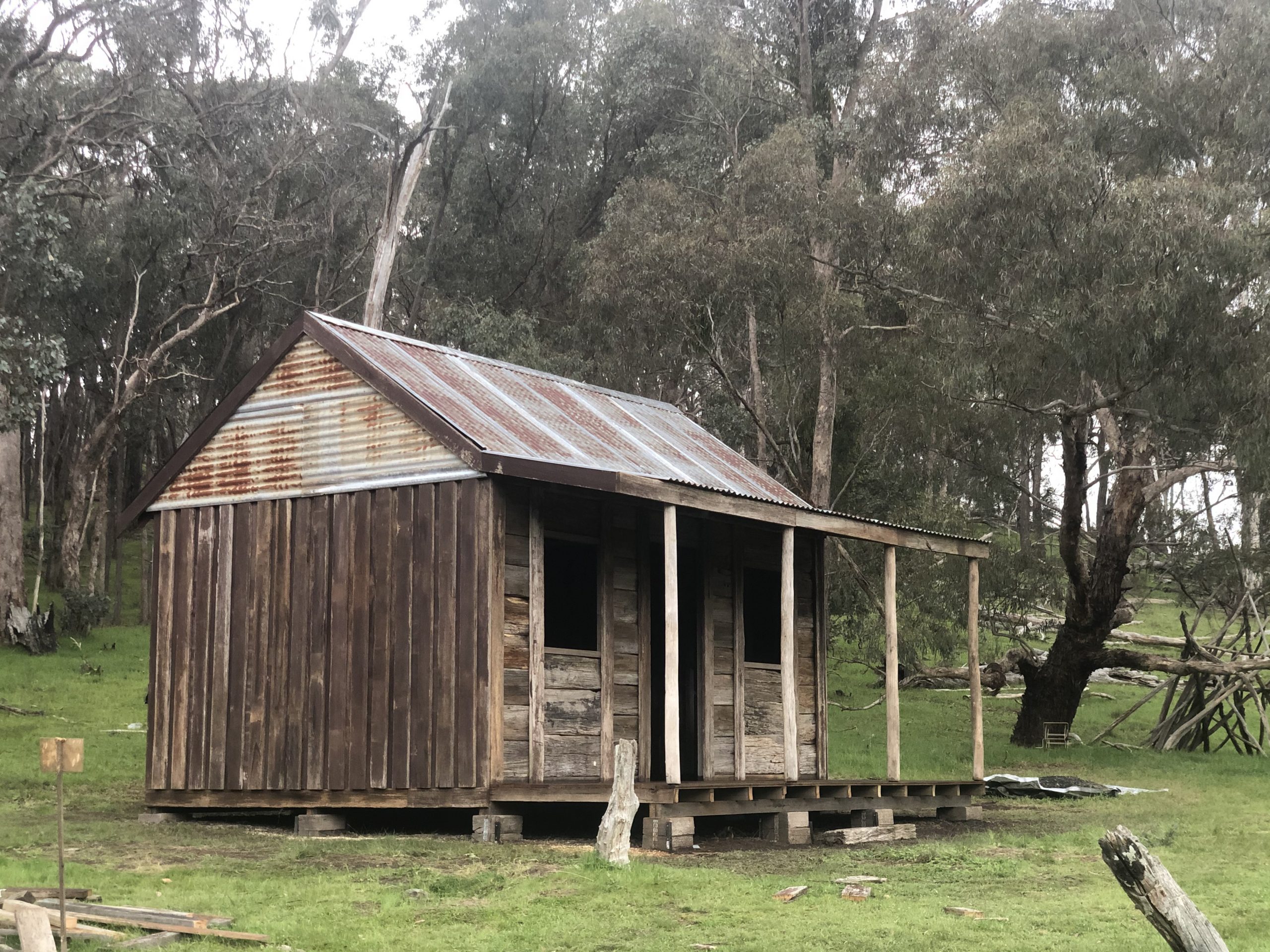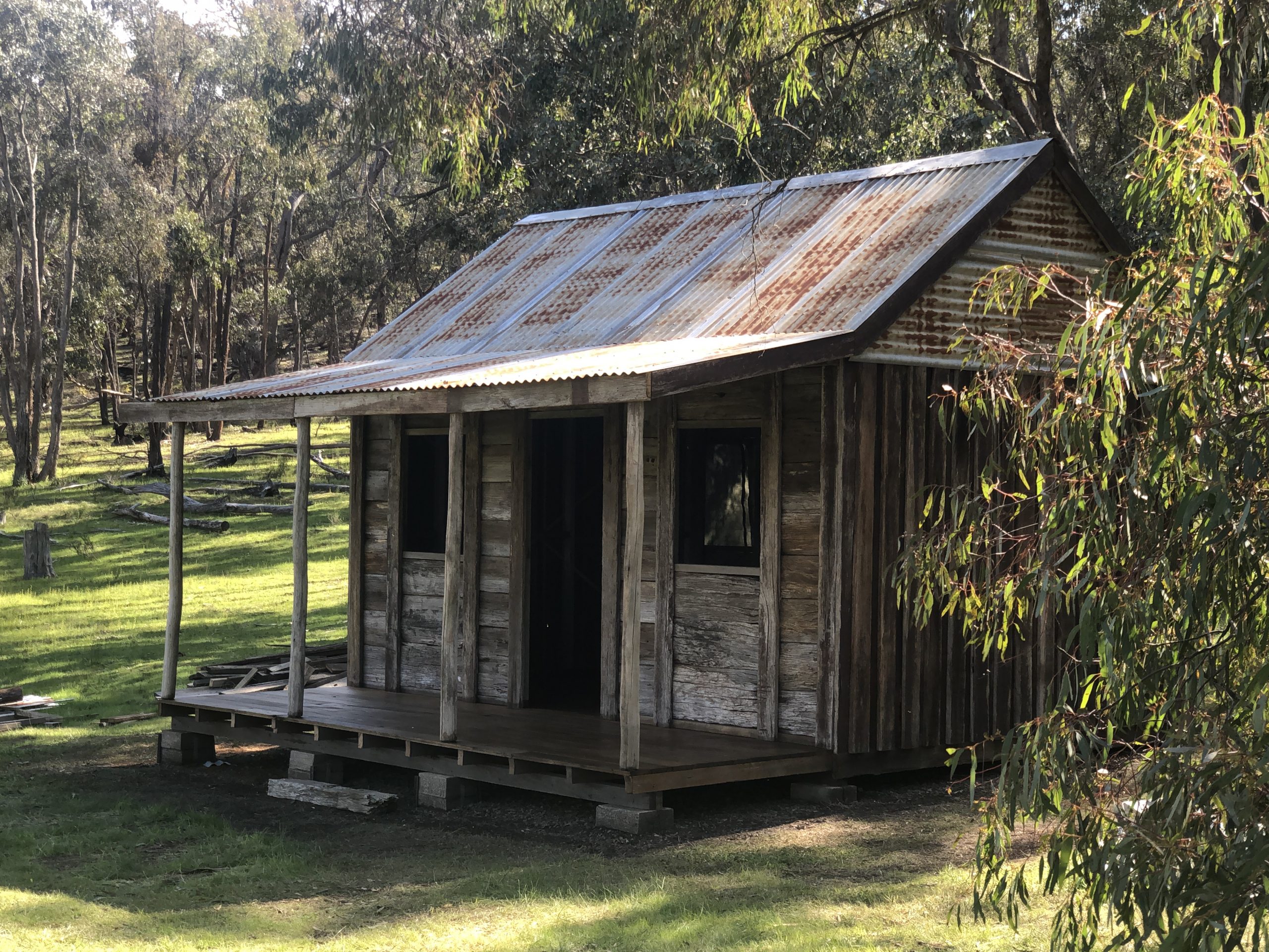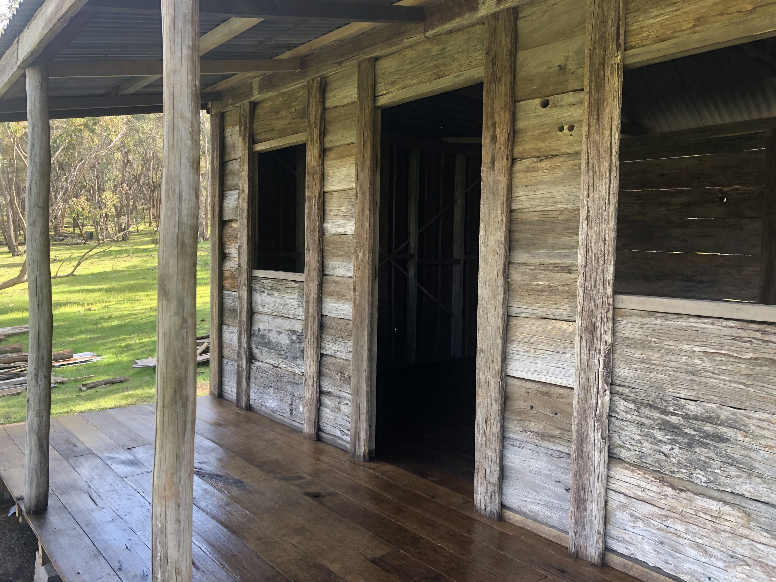 This is just a beautiful example of what some of our clever customers got up to over lockdown. Built entirely from materials sourced from our yard (and in turn sourced from ALL over the shop!)… this father and son team whose first language is NOT construction, have done a fine job of re constructing a slab hut on their property here in Central Victoria.