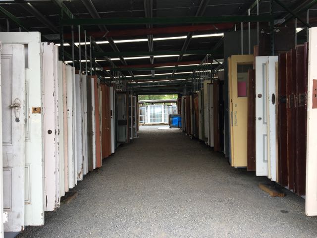 We have a covered racking system which holds over 500 doors…. it is rather full! The racks have been custom built for ease of viewing (so no doors are stacked flat against each other) so you don’t need to wrestle one off the other to have a look!