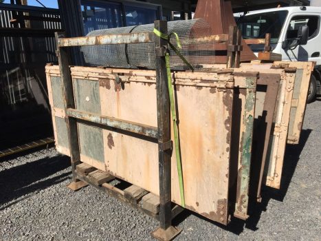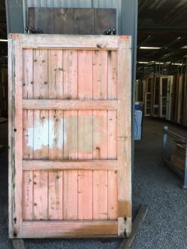 We have a broad range of internal and external grade doors from various eras…. and although we should have photographed each one beautifully before we filled the racks… we didn’t! So, we can occasionally show you an example of new stock that arrives on the truck… like these old warehouse doors, and the steel, riveted numbers in the stillage!