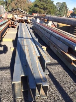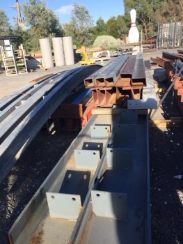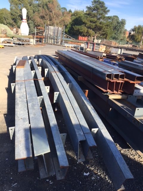 Truck and trailer load of assorted large scale steel sections arrived over the last couple of weeks and are currently taking up LOTS of premium space in the yard (notably in the place where we need to park the trailers!!!). Assorted webbed trusses, curved I beams and hollow sections… including some very thick walled square sections. Selling individually or per tonne.