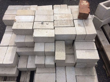 We ensure that there is always a supply of bricks in the yard… a selection of cleaned pressed reds, creams, hand mades, wire cuts and various types of pavers, blue stone pitchers, granite and cement blocks and other assorted masonry that come along can be found.